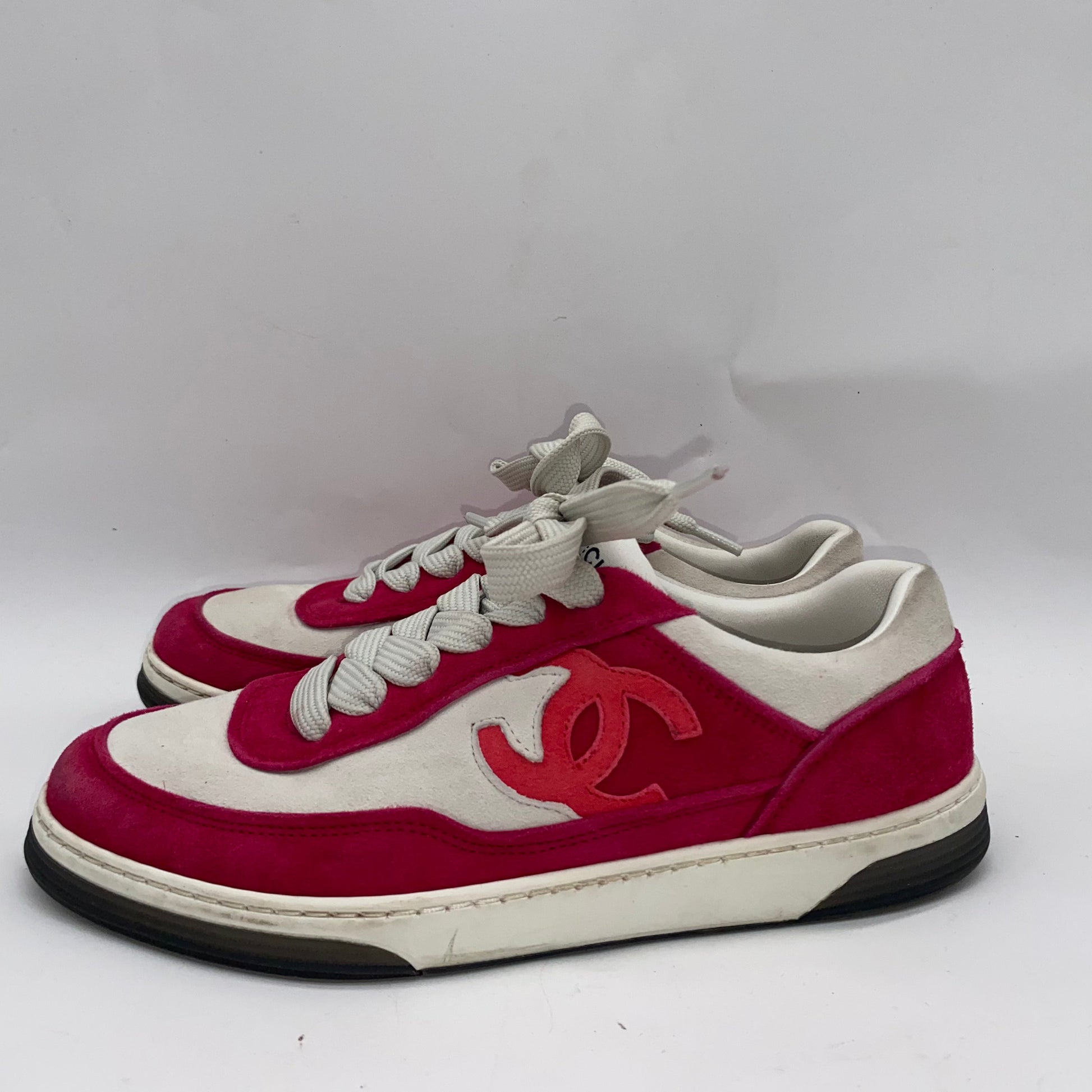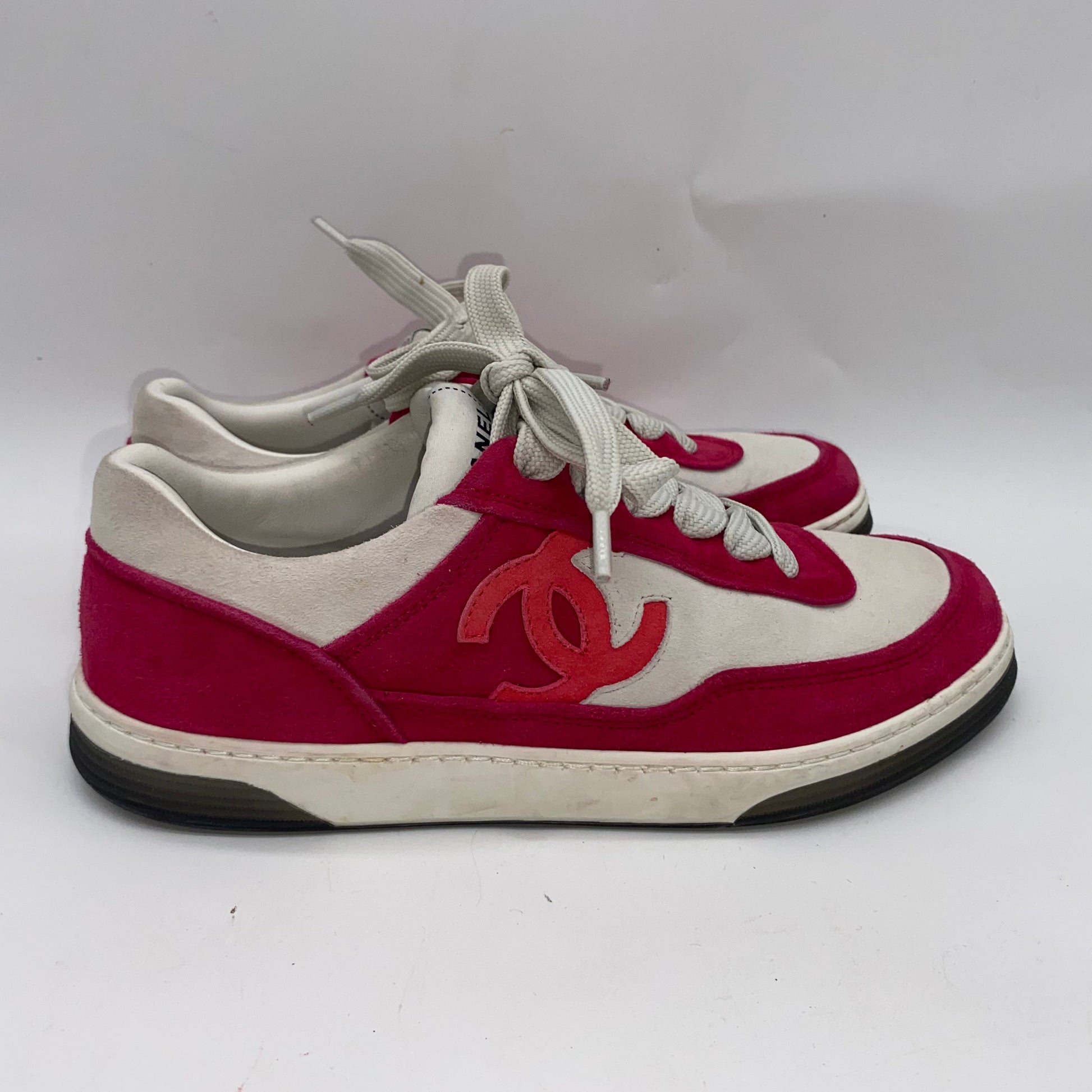 Size: 36.5 Style: Chanel Fuchsia/White Suede Kidskin Sneakers |
