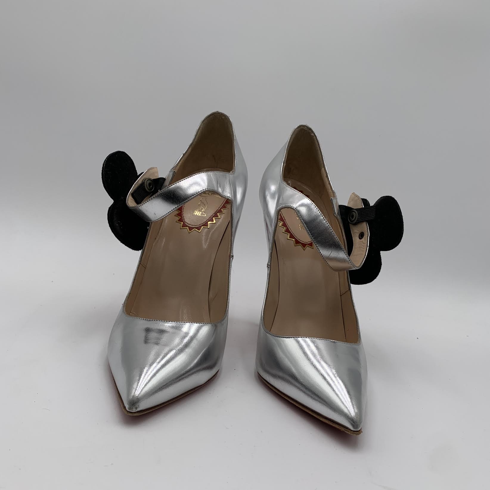 Size: 40.5 Style: Silver Pensee Specchio Pointed Red Sole Pumps |